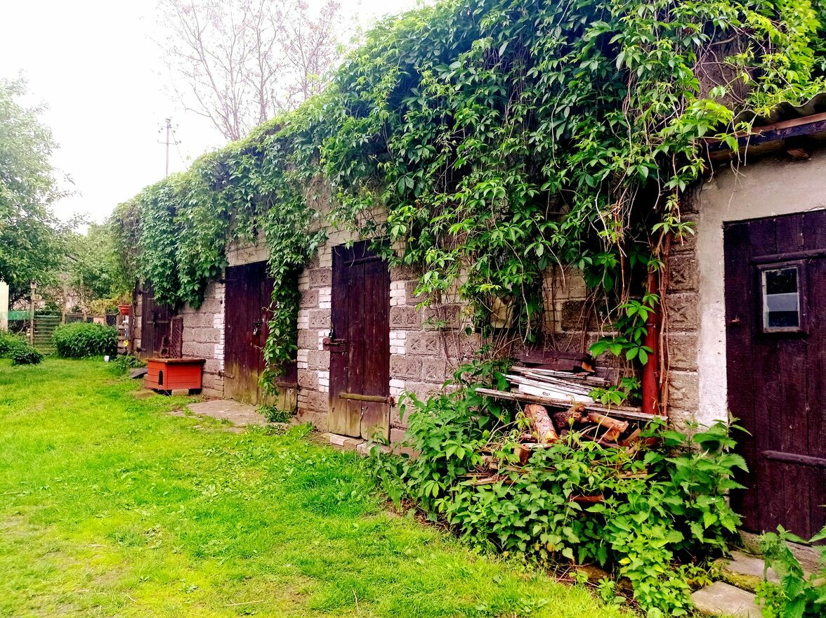 Dom z budynkami gospodarczymi na pięknej, zielonej działce.Drzewa i krzewy owocowe.