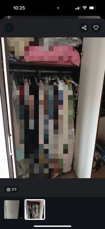 Zamykana szafa z drążkiem na wieszaki.Na górze dodatkowa półka.